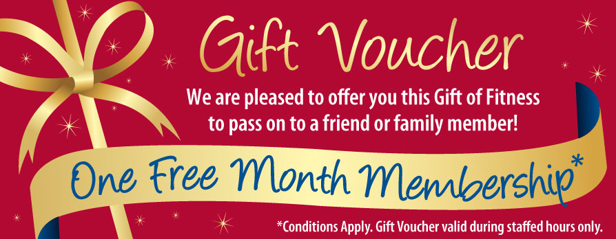 FREE ONE MONTH GYM PASS includes access during staffed hours for use of the gym with a HUGE range of pin loaded and free weights; cardio equipment & a range of exciting Group Fitness classes for all ages and fitness levels.